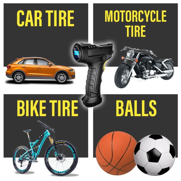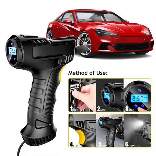 Η ενσωματωμένη λάμπα LED παρέχει πρόσθετο φωτισμό σε συνθήκες που δεν υπάρχει αρκετός φωτισμός. Είναι ιδανικός για χρήση στο σκοτάδι ή σε καταστάσεις έκτακτης ανάγκης. Απλώς συνδέστε το καλώδιο του συμπιεστή στο βύσμα του αυτοκινήτου και πατήστε το κίτρινο κουμπί για να αρχίσει να γεμίζει τα ελαστικά. Όταν γεμίσουν τα ελαστικά, αφήστε το κουμπί και η δουλειά ολοκληρώθηκε.