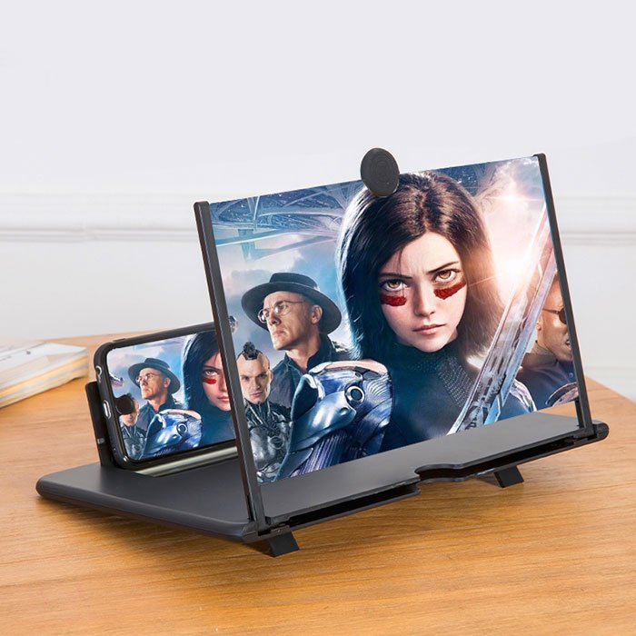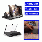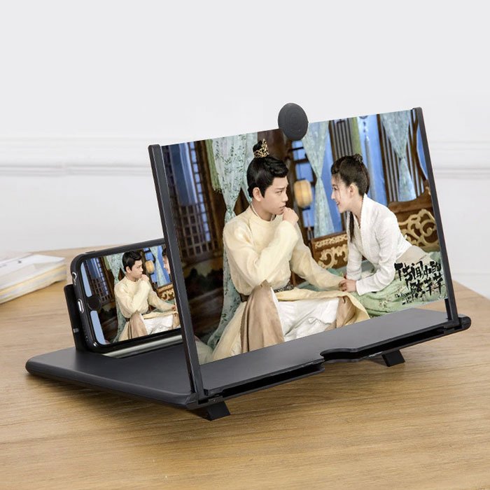 9,8 palčni povečevalnik zaslona uporablja fizično optično tehnologijo projekcije posnetkov, slik in drugih datotek iz mobilnih telefonov. Povečevalno steklo poveča dogajanje iz telefona na lečo za 3 do 5 krat.