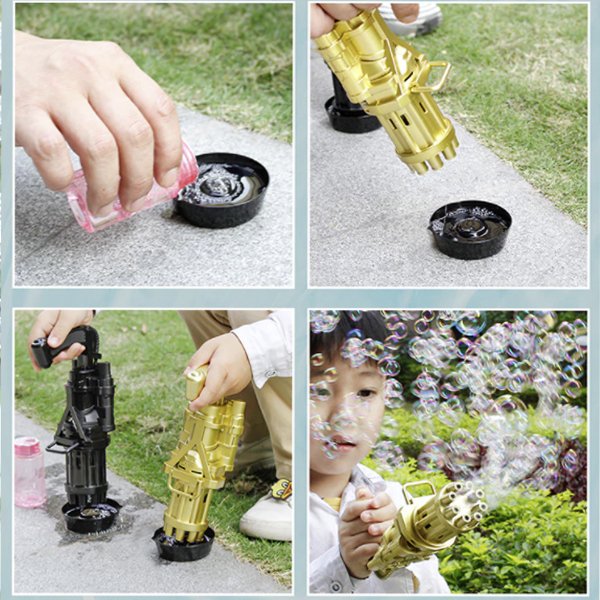 Πολύ εύκολο στη χρήση, απλώς τοποθετήστε τις μπαταρίες, ξαναγεμίστε το υγρό των φυσαλίδων, τραβήξτε τη σκανδάλη και διασκεδάστε δημιουργώντας φυσαλίδες