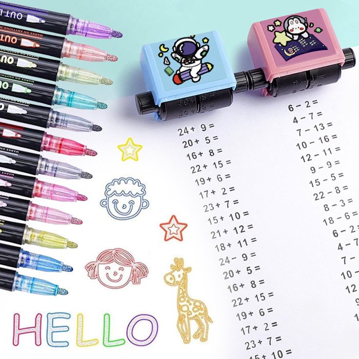 Αυτοί οι ασημένιοι μαρκαδόροι κάνουν τα DIY έργα σας ακόμα πιο ελκυστικά με το πολύχρωμο περίγραμμά τους! Με αυτήν την επαναχρησιμοποιήσιμη μαθηματική σφραγίδα, τα παιδιά σας θα αποκτήσουν πολλές γνώσεις και θα υπολογίζουν πιο γρήγορα και με μεγαλύτερη ακρίβεια.