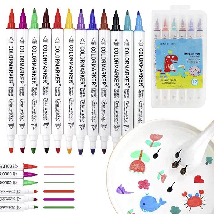 Η συσκευασία περιέχει: 12 στυλό νερομπογιάς διαφορετικών χρωμάτων και 1 κουτάλι