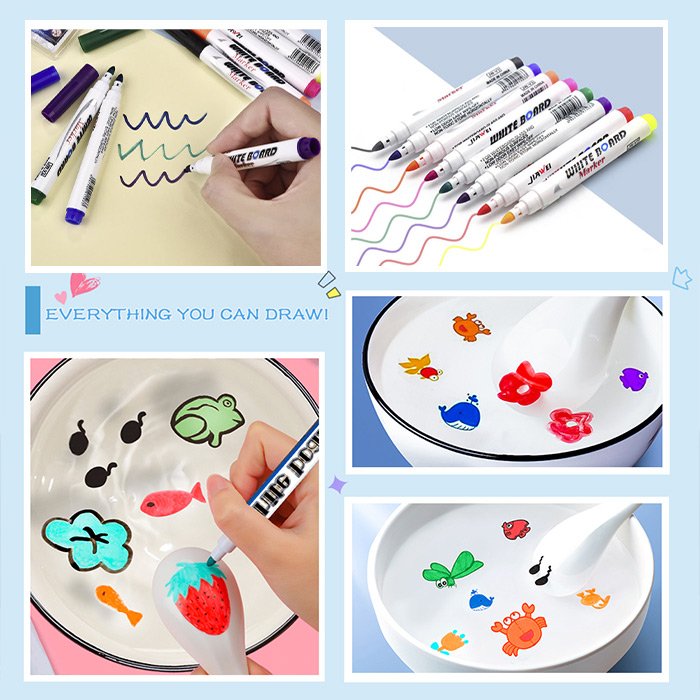 Το πολύχρωμο μαγικό στυλό είναι για ζωγραφική στον πίνακα, ζωγραφική με νερό και σε οποιεσδήποτε διαφορετικές επιφάνειες. Είναι κατάλληλο για παιδικά γκράφιτι σε χαρτί, για γράψιμο και ζωγραφική σε διαλέξεις της τάξης, και είναι επίσης χρήσιμο για συναντήσεις στο γραφείο. Με αυτά τα στυλό, δημιουργούν ατελείωτες δυνατότητες δημιουργικότητας, καθώς μπορούν να σχεδιάσουν κάθε είδους μικρά ψάρια, χελώνες, δελφίνια, λουλούδια, πεταλούδες και άλλα, τα οποία τελικά αφήνουν να επιπλεύσουν στο νερό.