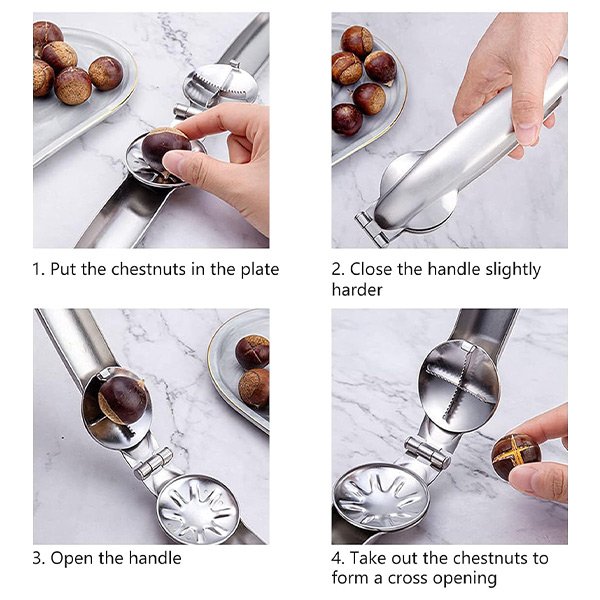 Σε όλους αρέσει να περνάνε τα βράδια τρώγοντας ψητά κάστανα, αλλά σε κανέναν δεν αρέσει να προετοιμάζει και να κόβει κάστανα πριν το ψήσιμο. Με αυτό το εργαλείο, αυτή η διαδικασία θα γίνει γρήγορη, εύκολη και διασκεδαστική. Επιπλέον, μπορείτε να το χρησιμοποιήσετε για να ανοίξετε καρύδια, τα οποία συνήθως είναι πολύ ενοχλητικά στο άνοιγμα.
