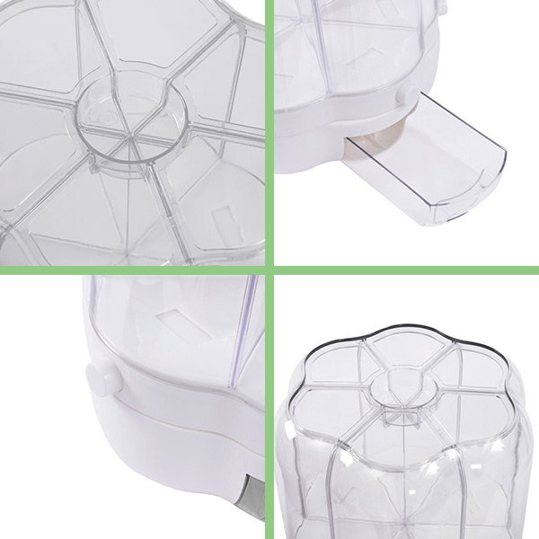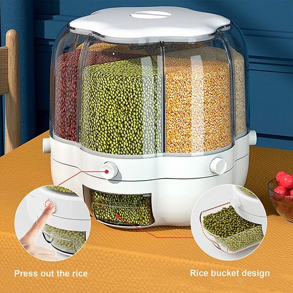 Το δοχείο αποθήκευσης τροφίμων που περιστρέφεται 360° σας επιτρέπει να έχετε εύκολη πρόσβαση και οργάνωση όλων των συστατικών σας, εκμεταλλευόμενοι στο έπακρο τον χώρο της κουζίνας σας.