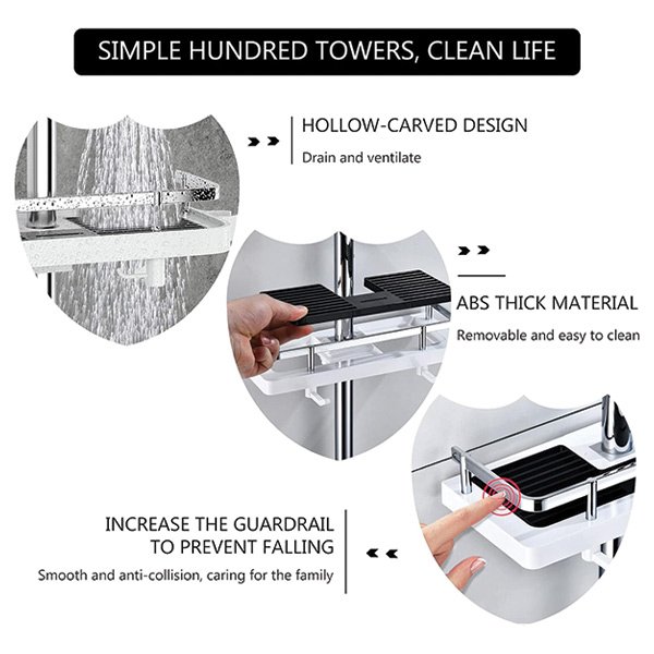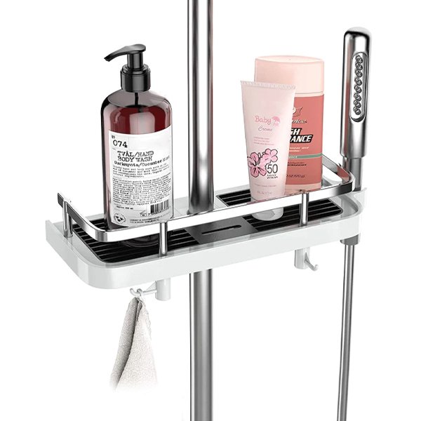 Με πολλά ρυθμιζόμενα ράφια και γάντζους, το Showy προσφέρει άφθονη αποθήκευση για να έχετε τα απαραίτητα του μπάνιου σας σε κοντινή απόσταση. Πείτε αντίο στο να σκίψετε για να πάρετε το σαμπουάν σας από το πάτωμα ξανά!